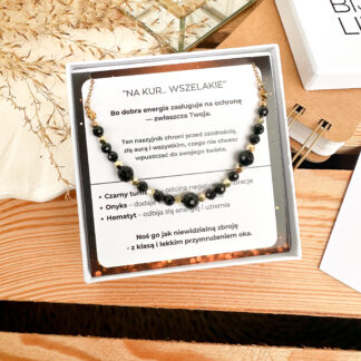 Naszyjnik z kamieni, turmalin, hematyt i onyks „Na kur… wszelakie”
