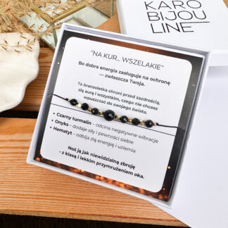 Bransoletka na sznurku z naturalnych kamieni „Na kur… wszelakie”