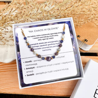 Naszyjnik z kamieni, ametyst, sodalit, howlit „Na chaos w głowie”