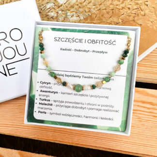 Bransoletka na sznurku z naturalnych kamieni „Na szczęście i obfitość”