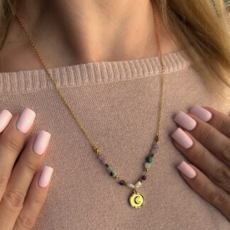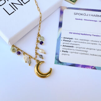 Naszyjnik spokoju i harmonii -księżyc, amazonit, fluoryt, ametyst i perła