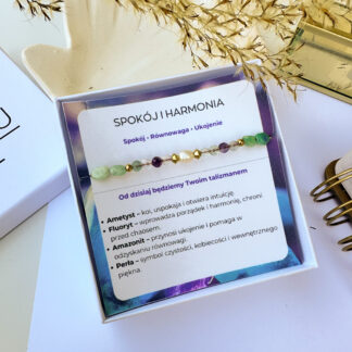 Bransoletka na złotym łańcuszku z naturalnych kamieni “SPOKÓJ I HARMONIA”