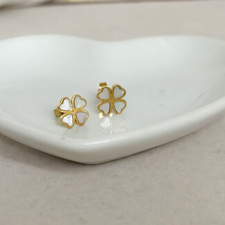 Promocja -20%Kolczyki – sztyfty, koniczynki z masą perłową