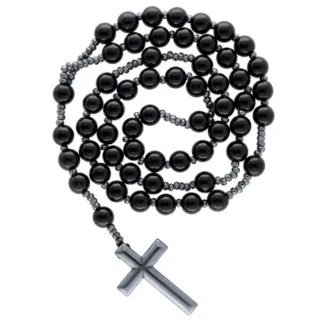 Promocja -20%Męski Naszyjnik Różaniec z onyksem i hematytem