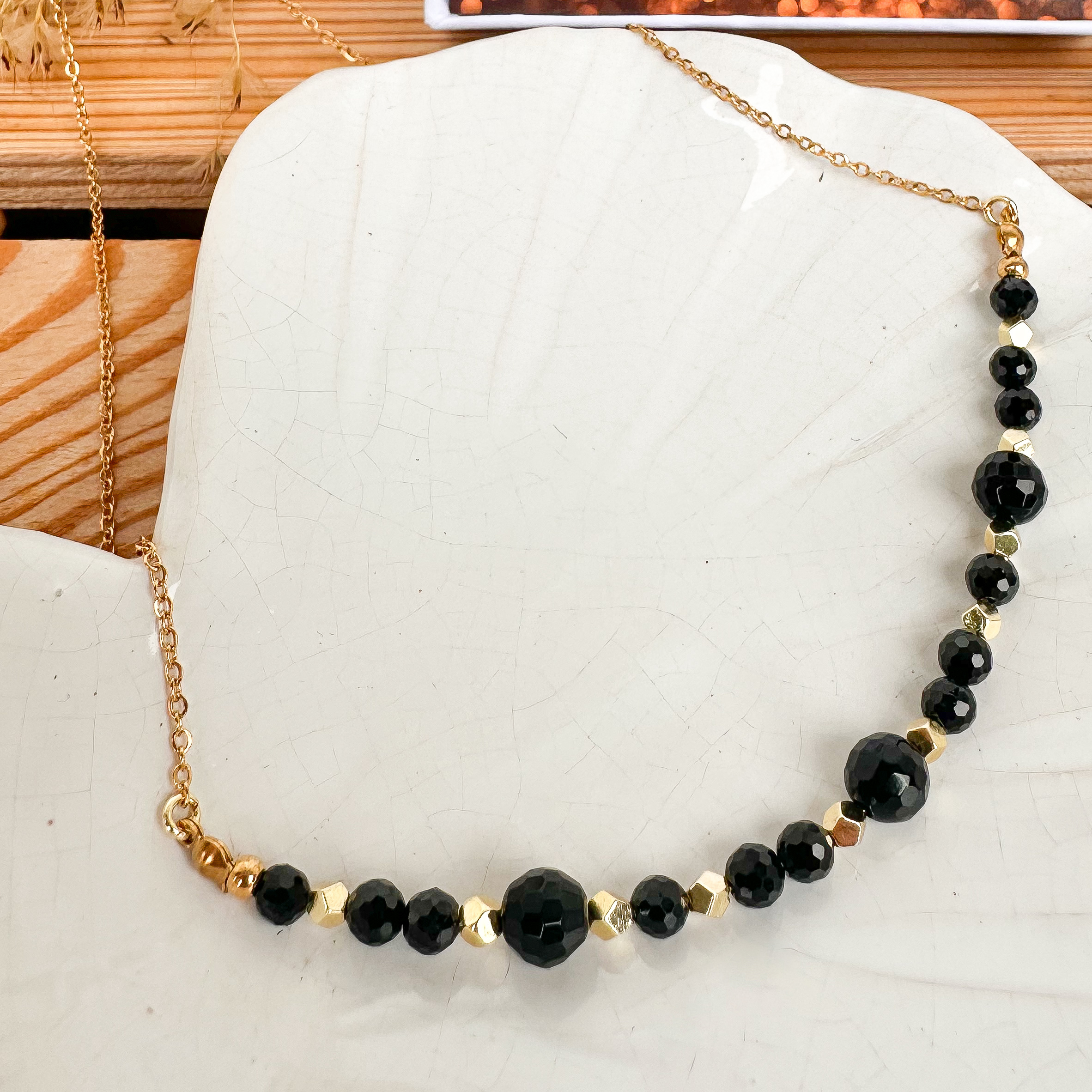 Naszyjnik z kamieni, turmalin, hematyt i onyks „Na kur… wszelakie”