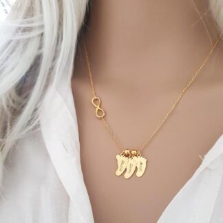 Bransoletka – 4 pozłacane serca z grawerem i nieskończoność na łańcuszku- prezent pod choinkę