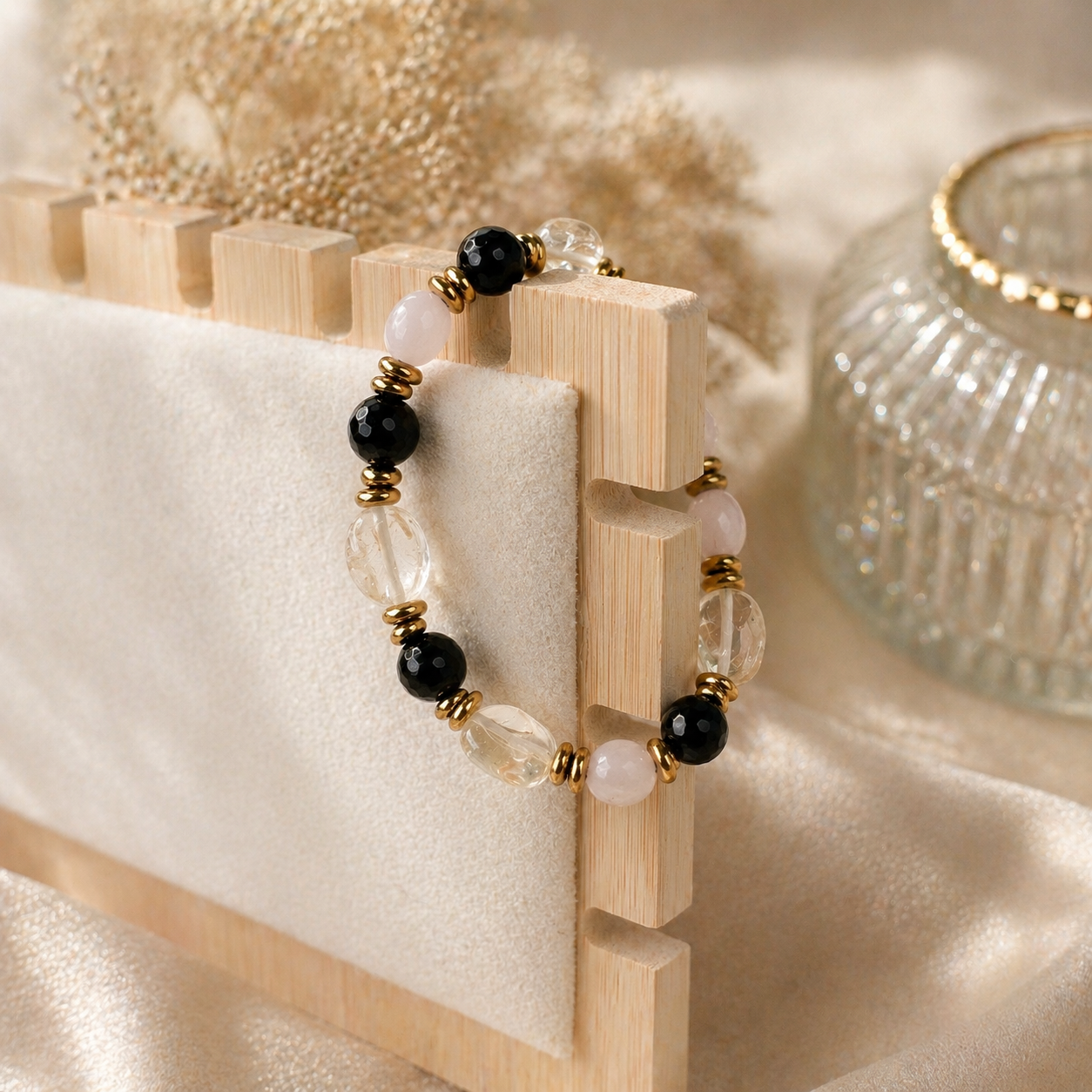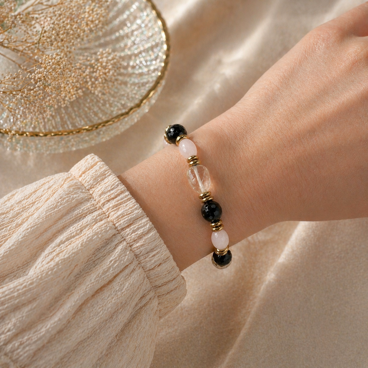 Bransoletka Mocy na gumce – Edycja Limitowana (Cytryn, Kwarc różowy i turmalin)