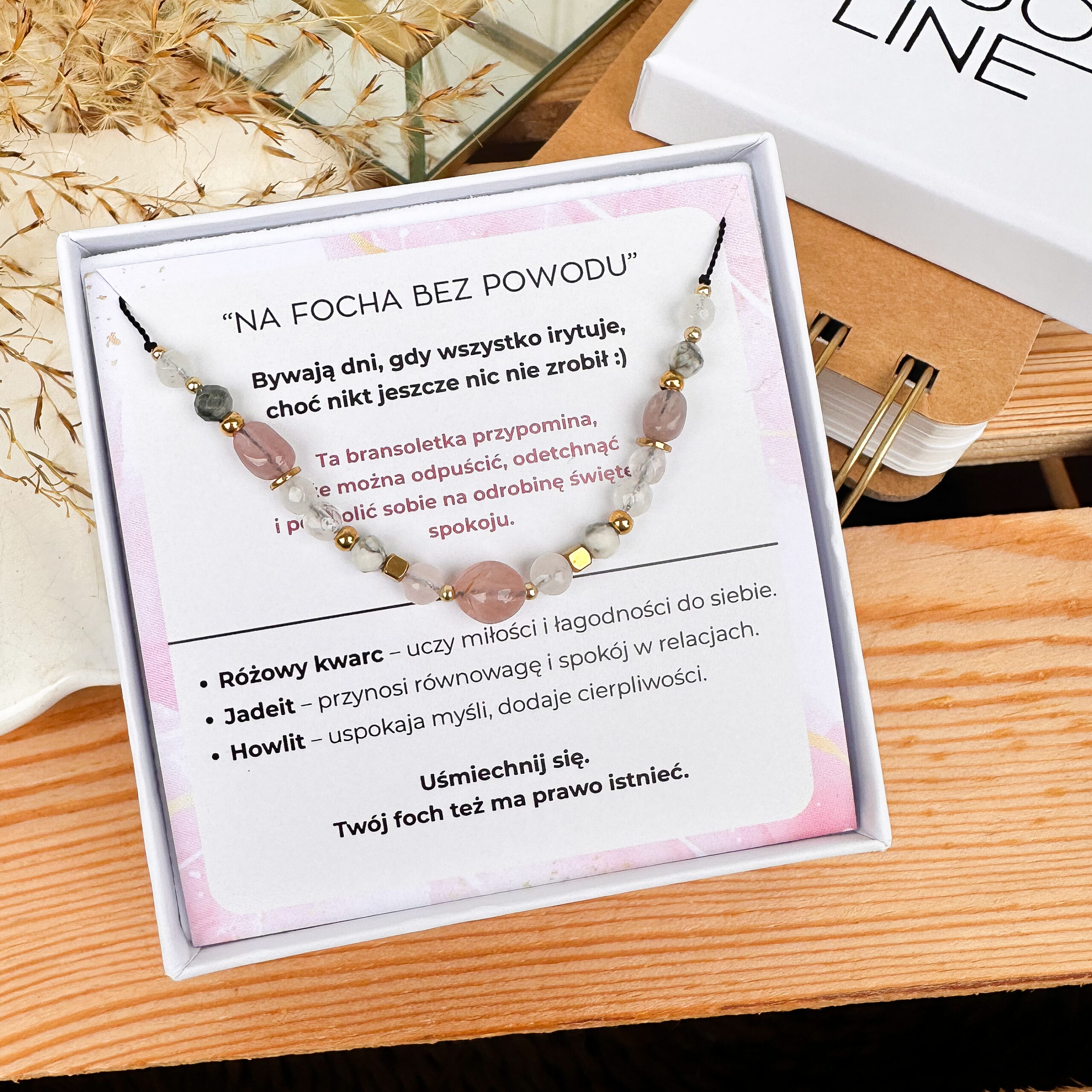 Bransoletka „Na focha bez powodu” to delikatna mieszanka kamieni, które przynoszą spokój, harmonię i przypominają, że masz prawo do emocji (nawet tych bez powodu).