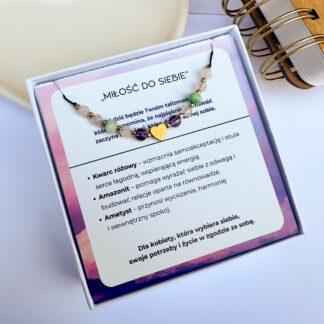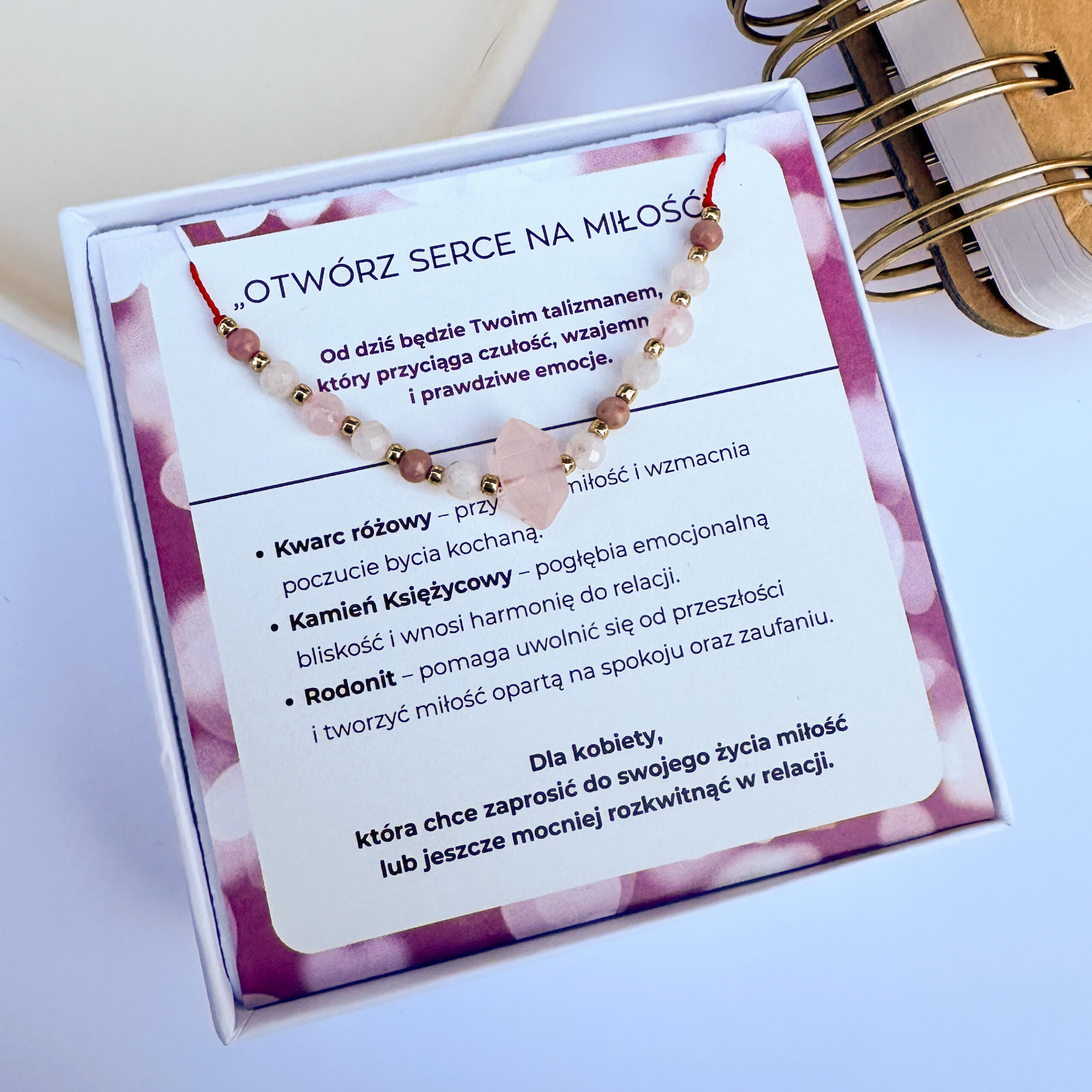 Bransoletka na sznurku z naturalnych kamieni „OTWÓRZ SERCE NA MIŁOŚĆ”