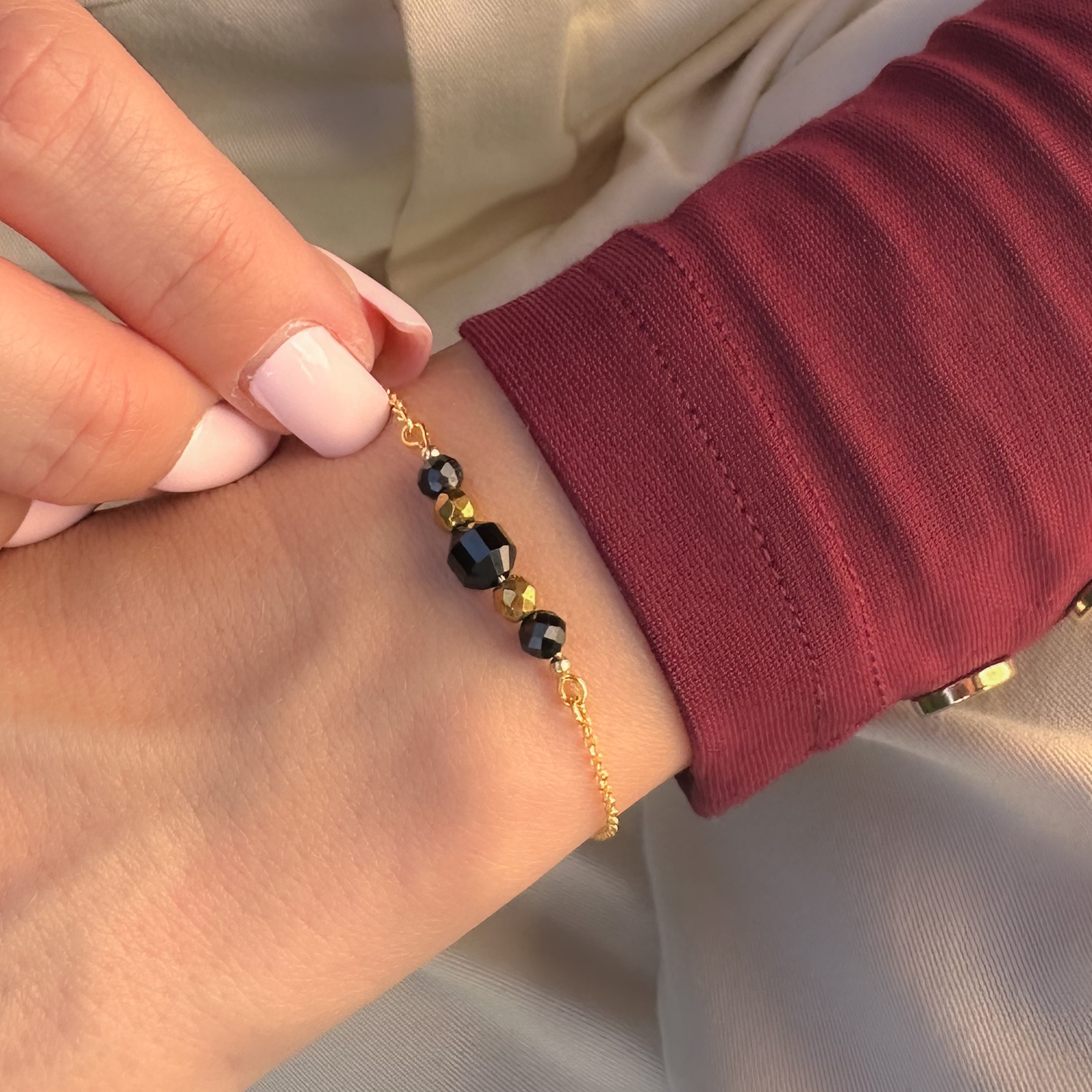 Bransoletka ochronna na złotym łańcuszku z naturalnych kamieni