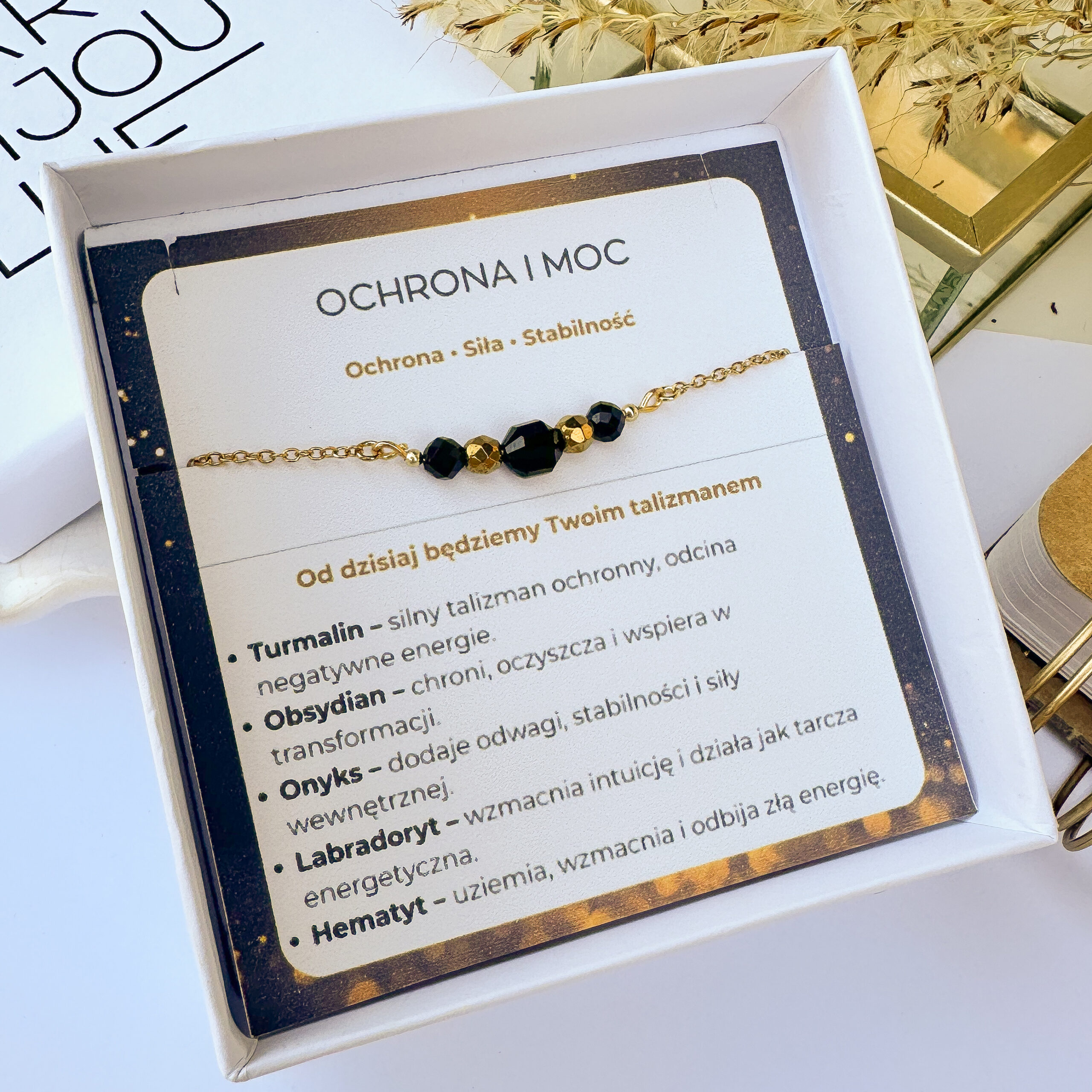 Kolekcja „Ochrona i Moc” to biżuteria stworzona dla osób, które pragną poczuć się bezpiecznie i pewnie każdego dnia. Połączenie kamieni ochronnych z odpowiednimi symbolami tworzy tarczę energetyczną, która wzmacnia aurę, odcina negatywne wpływy i dodaje siły wewnętrznej.