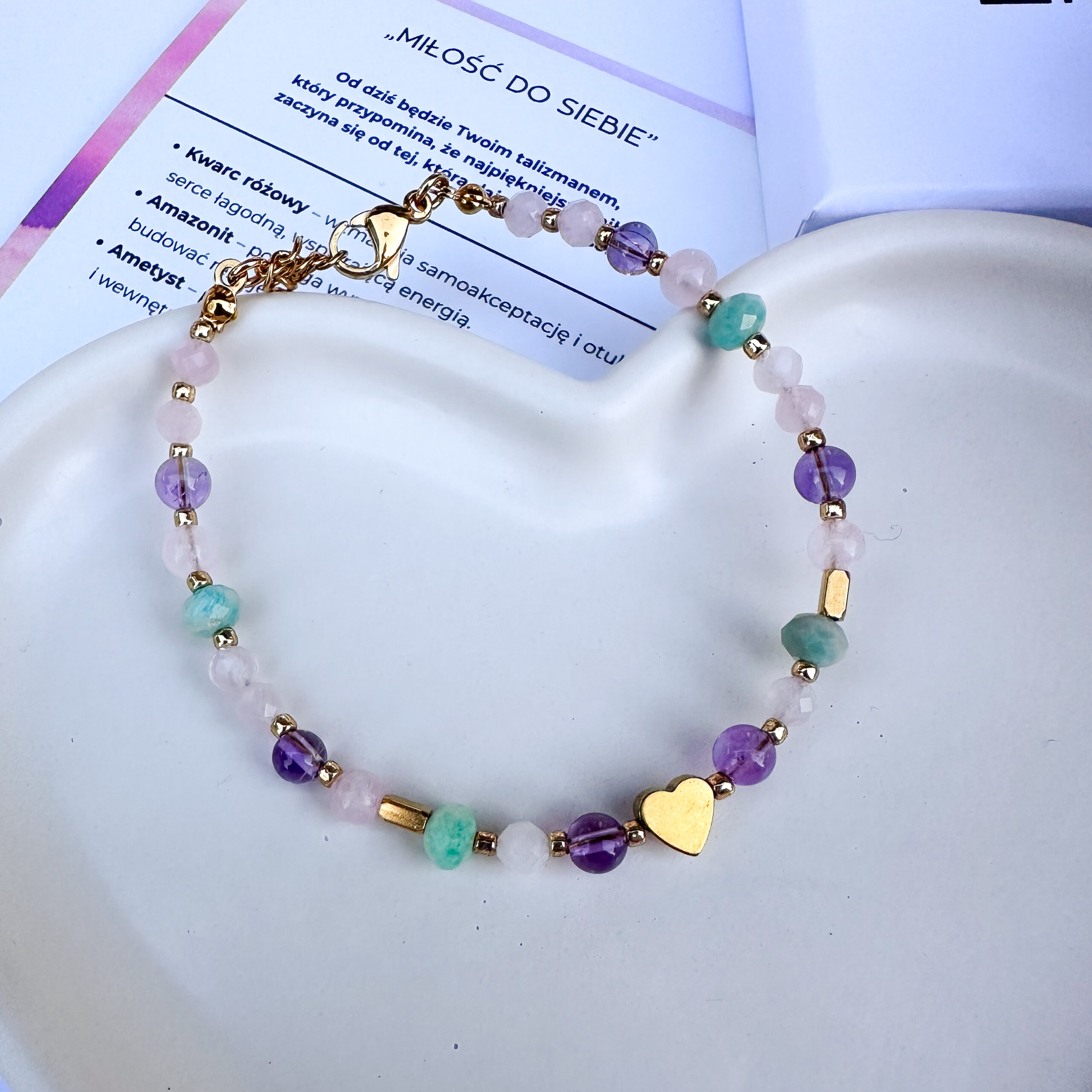 Bransoletka na łańcuszku z naturalnych kamieni „MIŁOŚĆ DO SIEBIE”
