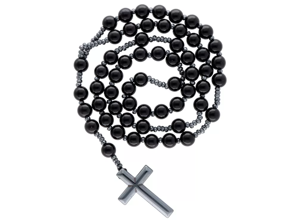 Męski Naszyjnik Różaniec z onyksem i hematytem