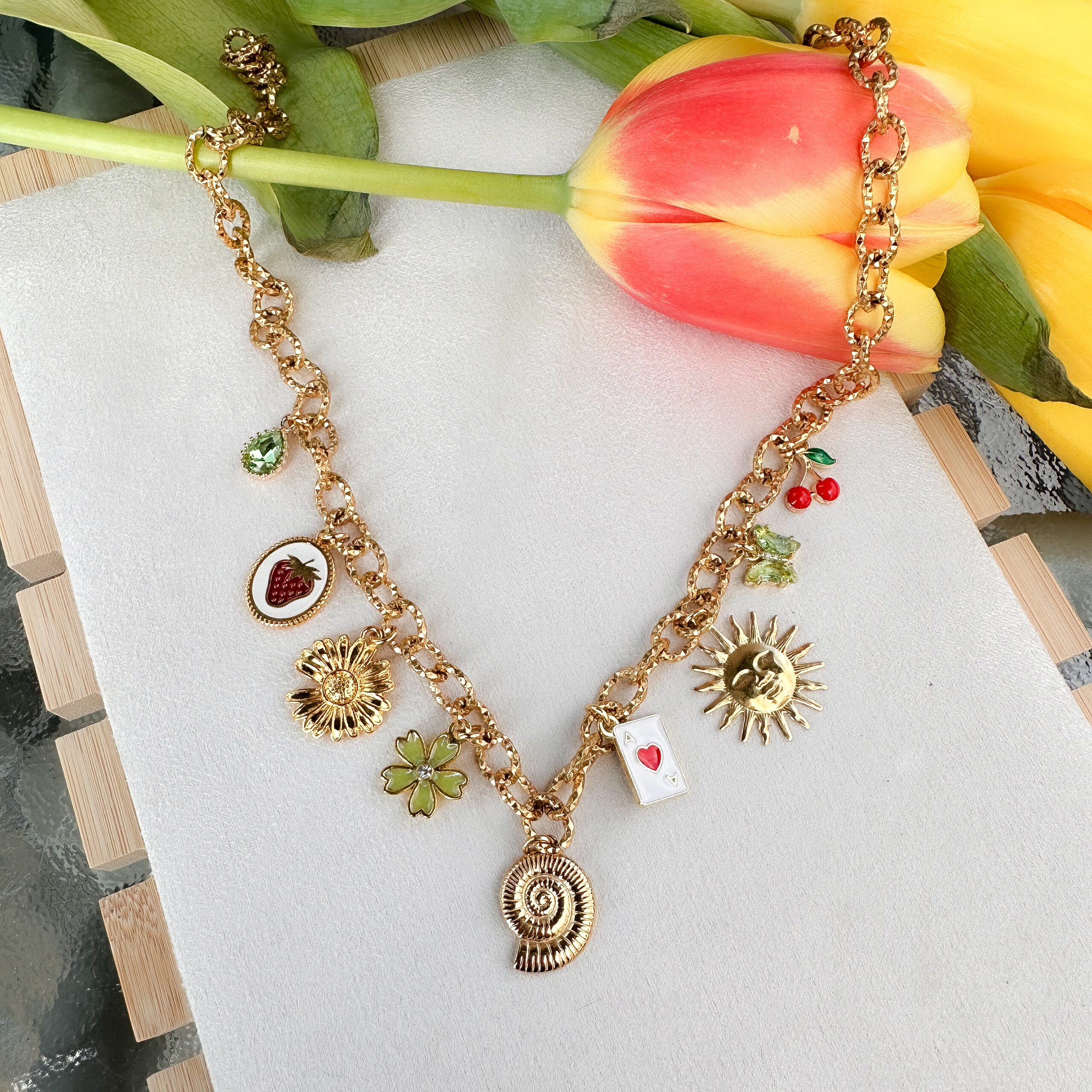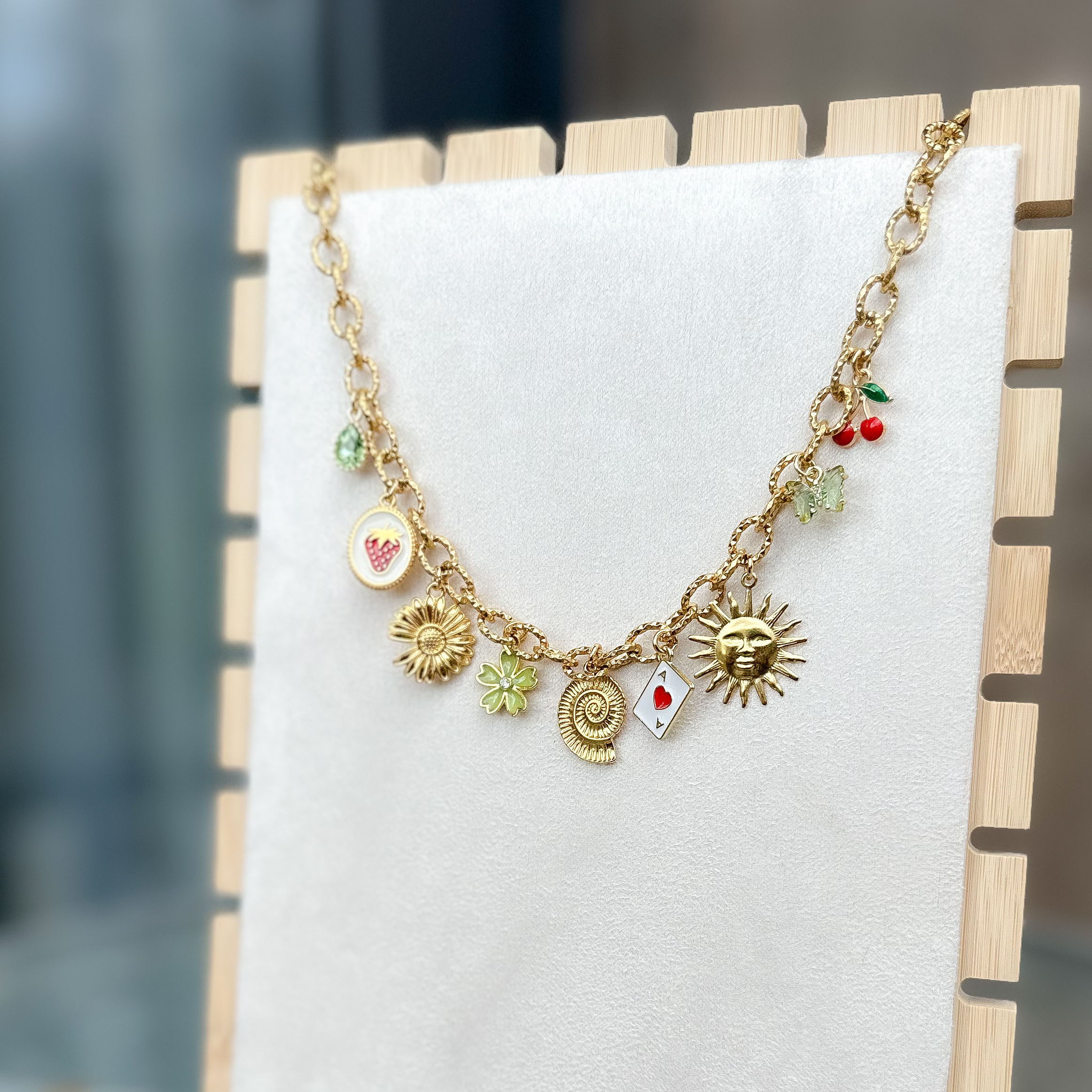 Odkryj biżuterię, która tętni życiem i pozytywną energią! Naszyjniki z linii Charm Necklace to modowy hit, który łączy luksusowy splot złotego łańcucha z kolekcją starannie dobranych zawieszek. To nie tylko dodatek – to Twój osobisty pamiętnik pełen symboli szczęścia, natury i beztroski.