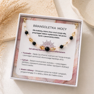 Zapakowany w eleganckie pudełeczko z logo oraz karteczkę opisującą magiczne właściwości ametystu.