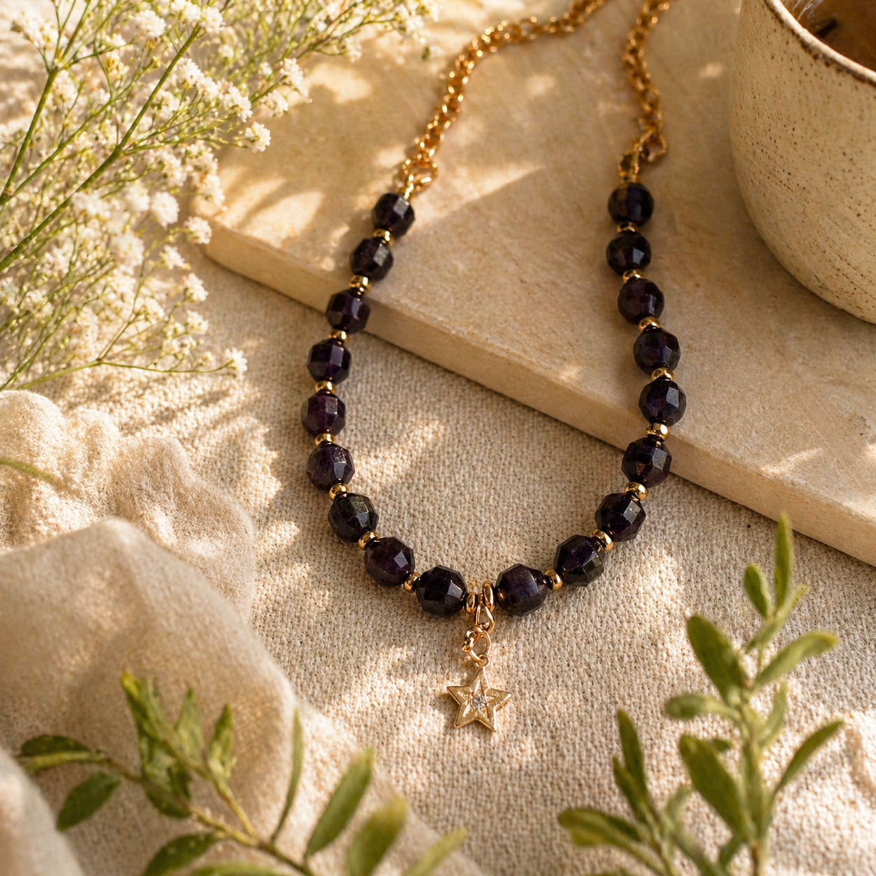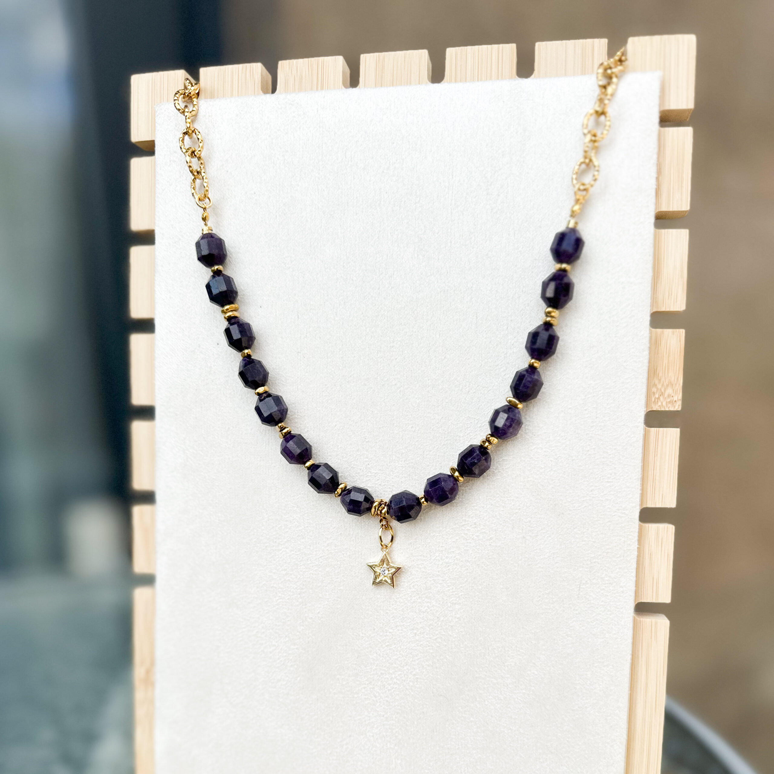 Naszyjnik „Gwiezdna Intuicja” – unikat z ametystem i gwiazdką