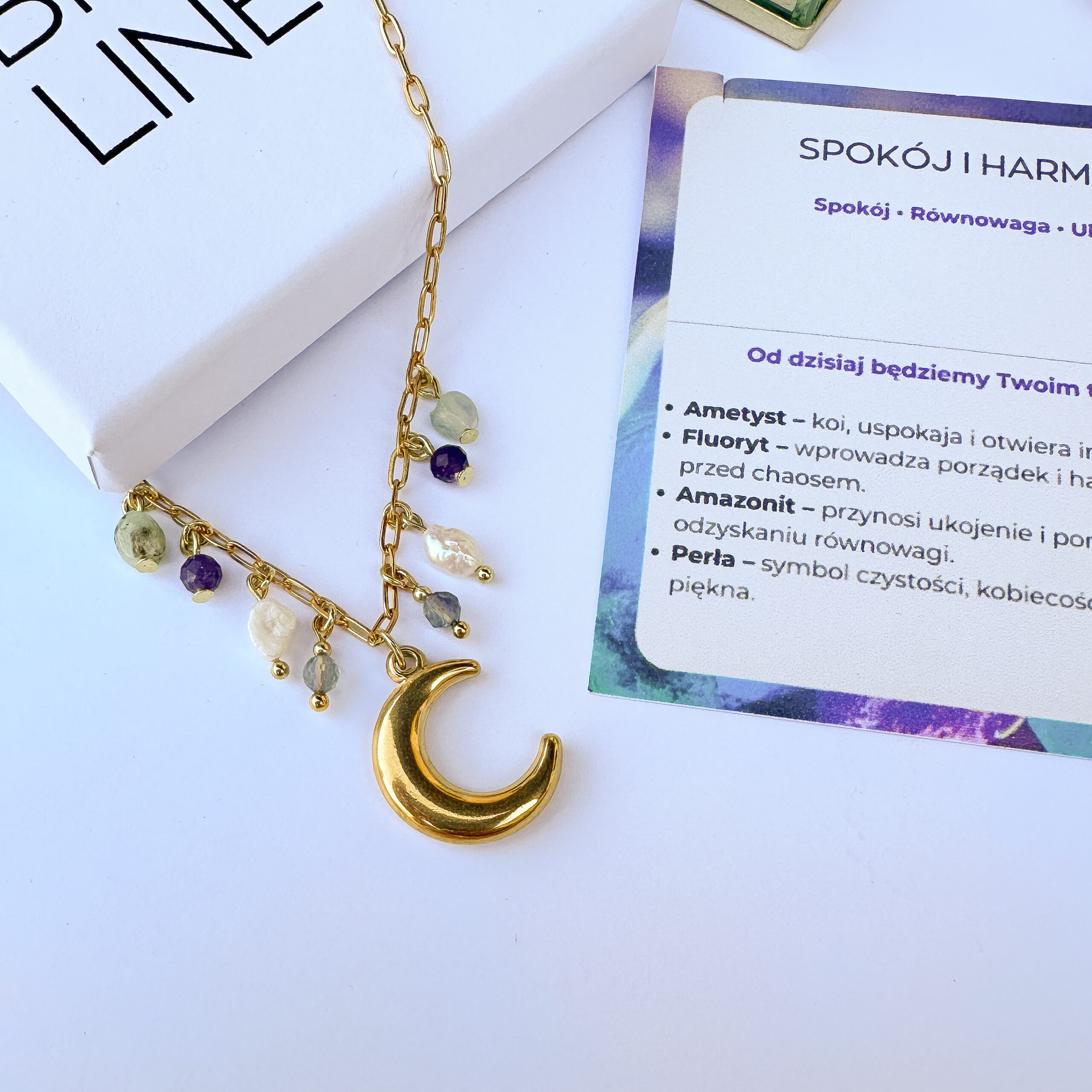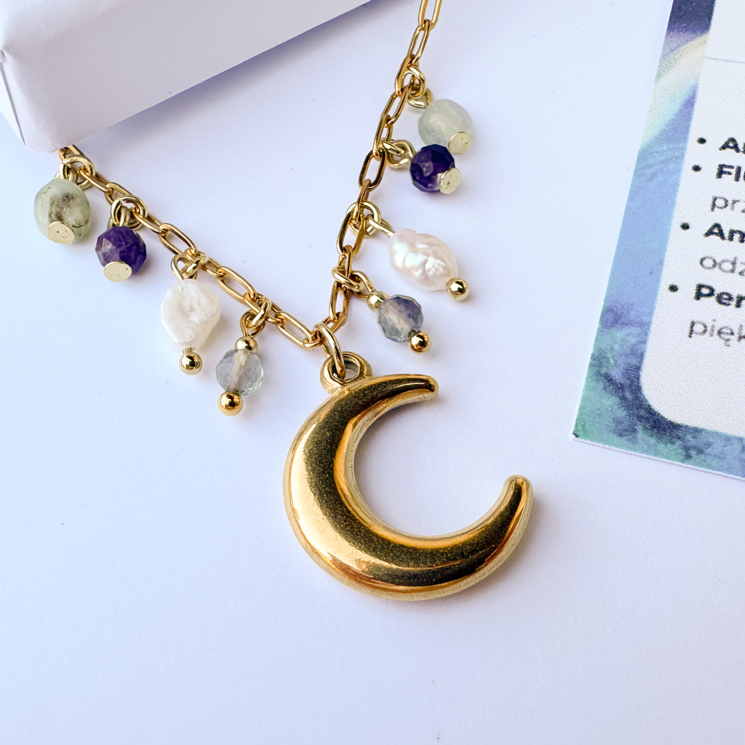 Ręcznie wykonany z naturalnych kamieni, dodatkowa zawieszka KSIĘŻYCA dodaje indywidualności