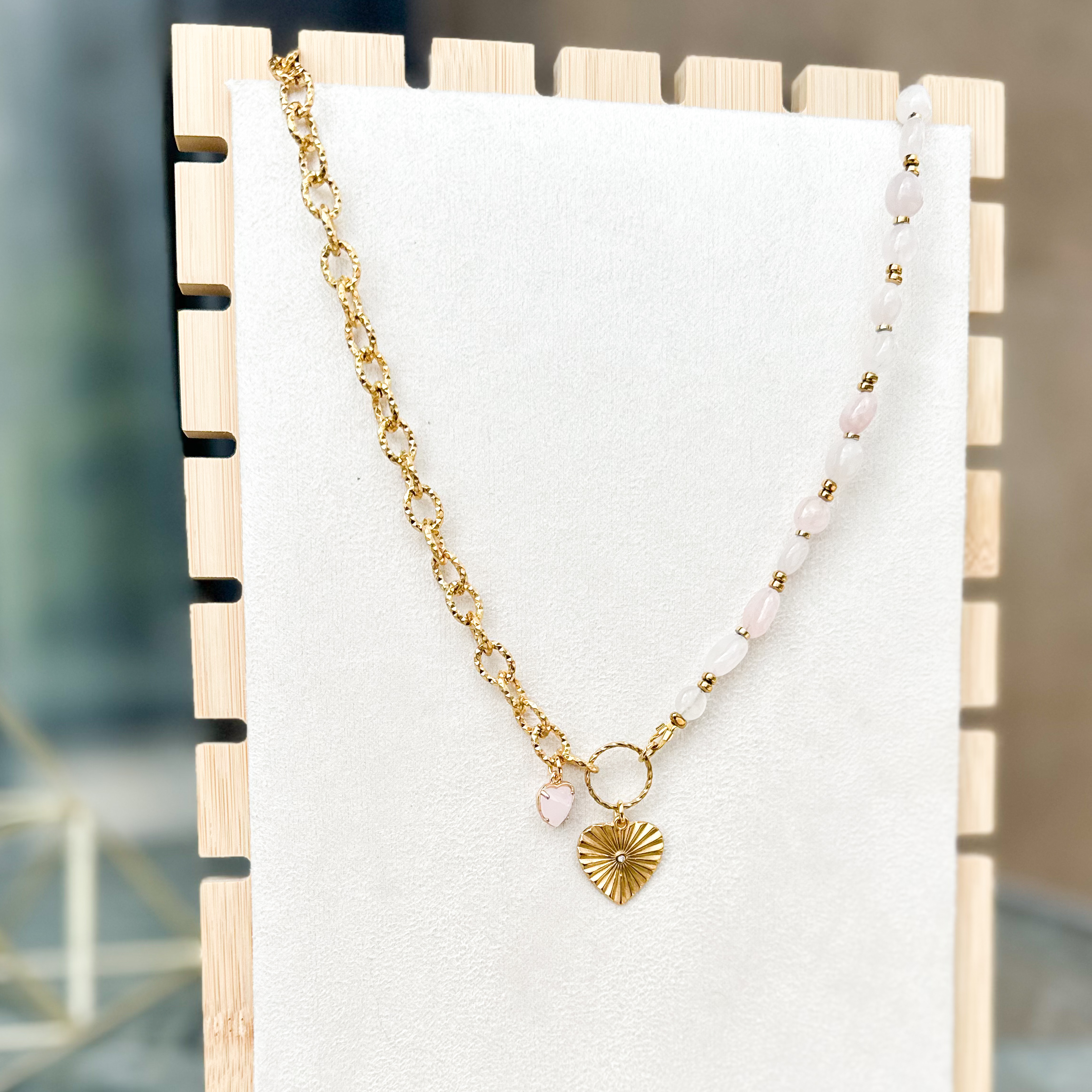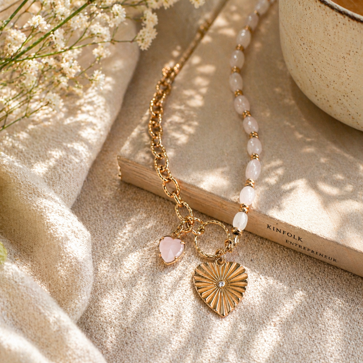 Naszyjnik „Miłość do Obfitości” – kwarc różowy i serce