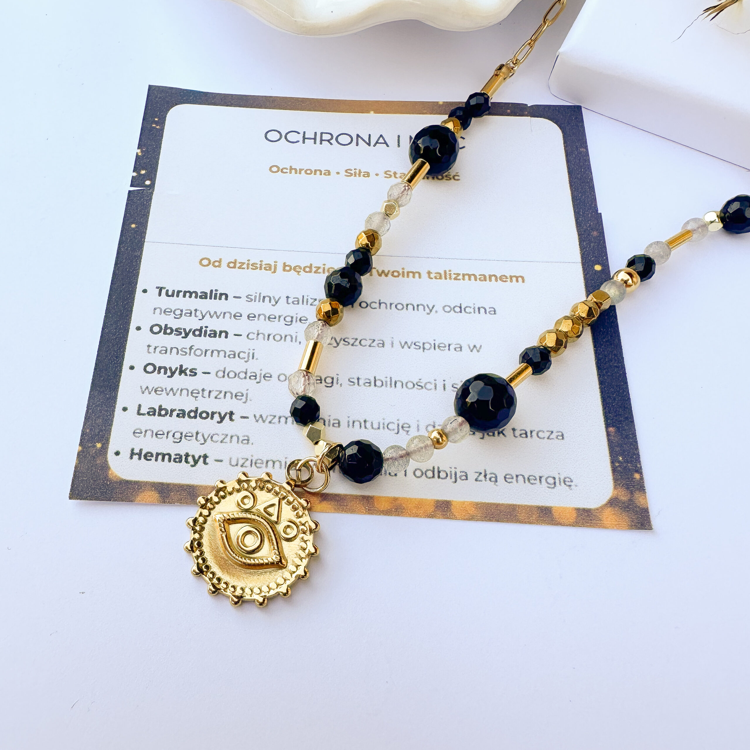 Naszyjnik ochronny z naturalnych kamieni i zawieszką Oko Proroka