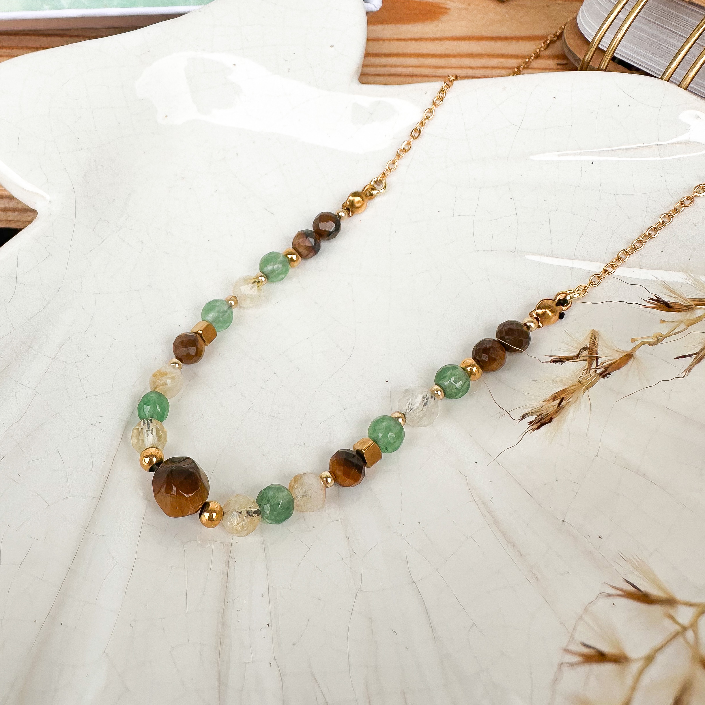 Naszyjnik z kamieniami „Na pieniądze w drodze” (cytryn, awenturyn, tygrysie oko)