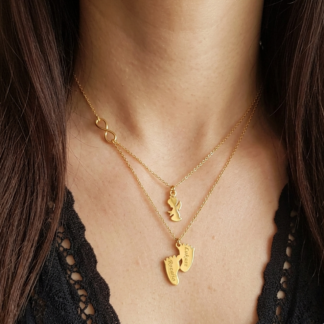 Pozłacany naszyjnik – podwójny naszyjnik – aniołek i stópki